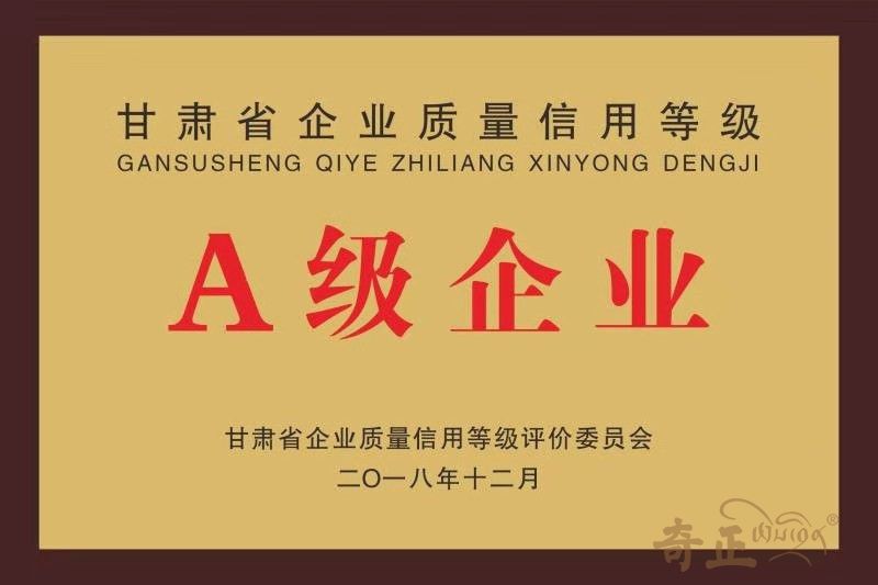 甘肅省質量信用等級A級企業(yè)(2018.12)