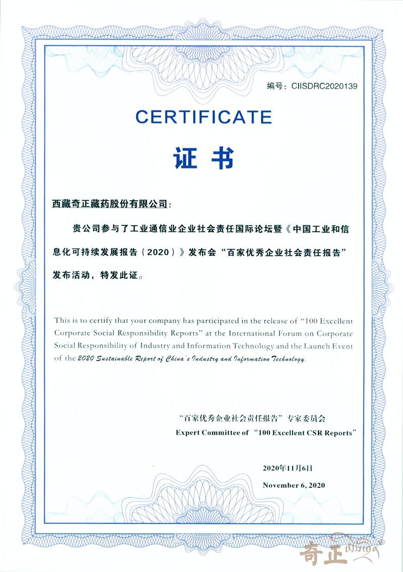 2020年6月“百家優(yōu)秀企業(yè)社會責(zé)任報告”-證書