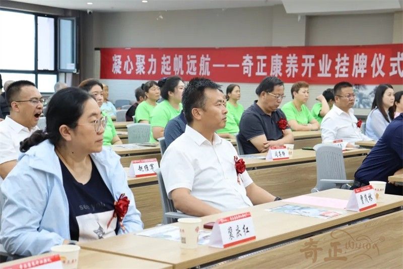 在現(xiàn)場熱烈的掌聲中,領導嘉賓共同為奇正康養(yǎng)揭牌。紅布緩緩揭開,牌匾熠熠生輝,象征著奇正康養(yǎng)正式揚帆起航。