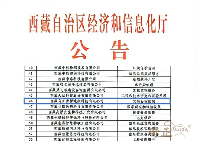 近日,西藏奇正青稞健康科技有限公司以創(chuàng)新之名,榮膺認(rèn)證創(chuàng)新型中小企業(yè)的殊榮,這一榮譽(yù)是公司過去十余年在青稞產(chǎn)業(yè)的卓越貢獻(xiàn)與創(chuàng)新精神的體現(xiàn)。公司不僅贏得了市場(chǎng)的廣泛認(rèn)可,更是獲得了官方對(duì)其深耕高原特色農(nóng)產(chǎn)品、推動(dòng)地區(qū)經(jīng)濟(jì)發(fā)展努力的肯定。